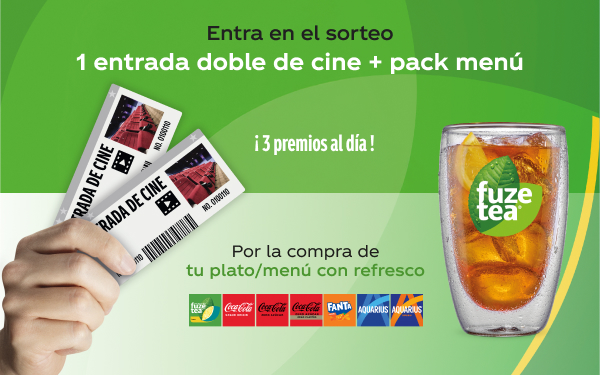 Entra en el sorteo de 1 entrada doble de cine + pack menú por la compra de tu plato/menú con refresco