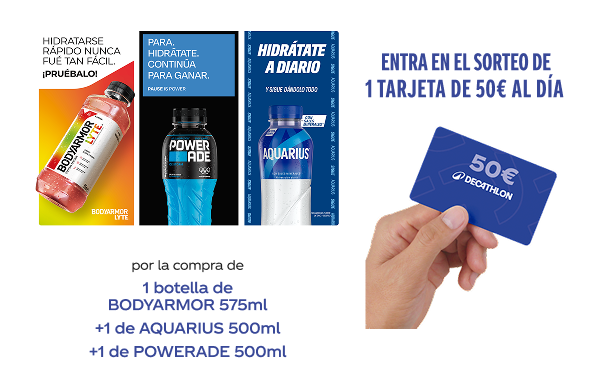 Sorteo de un tarjeta diaria por valor de 50€ en Decathlon.
