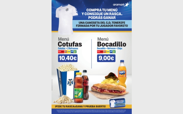 Por la compra de tu menú, consigue un R&G y podrás ganar una camiseta oficial del C.D. Tenerife firmada por tu jugador favorito.