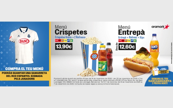 Por la compra de tu menú, consigue un R&G y podrás ganar una camiseta oficial del RCD Espanyol firmada por los jugadores.