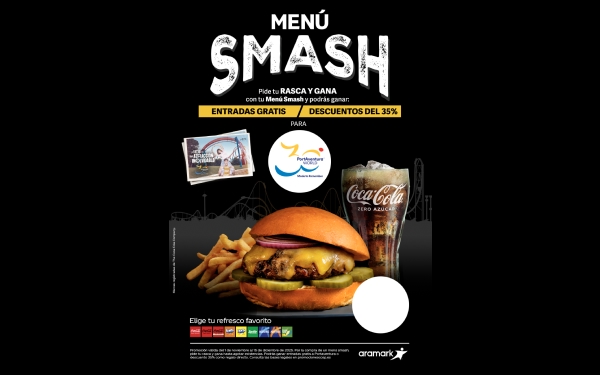 Por la compra de tu menú smash, consigue un R&G y podrás ganar entradas gratis a Port Aventura o descuento 35%.