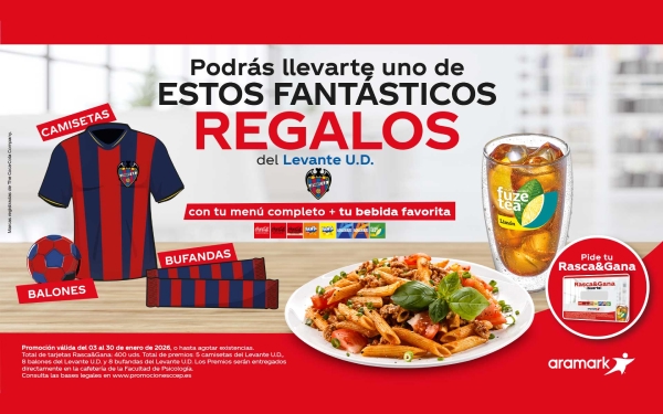 Por la compra de un menú completo + refresco podrás llevarte un R&G y ganar regalos del Levante U.D