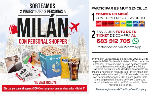 Por la compra de un Menú en Yelmo participa en el sorteo de un viaje para dos a Los Ángeles.