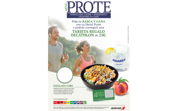Por la compra de un menu prote, te llevas un R&G donde te puede tocar una tarjeta del Decatlon valorada en 25€
