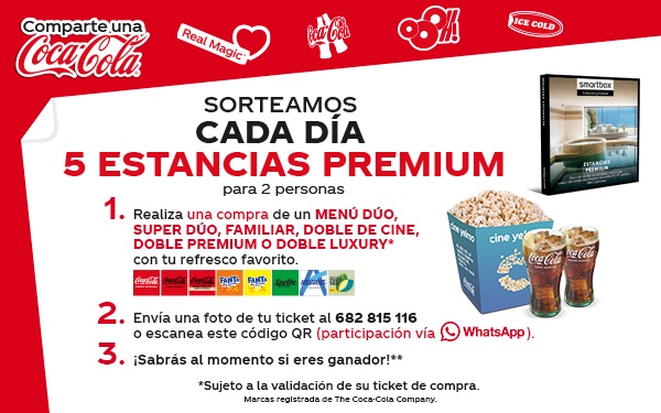 Por la compra de un menú dúo, super dúo, familiar, doble de cine, doble premium o doble luxury, podrás llevarte por momento ganador una “estancia premium"