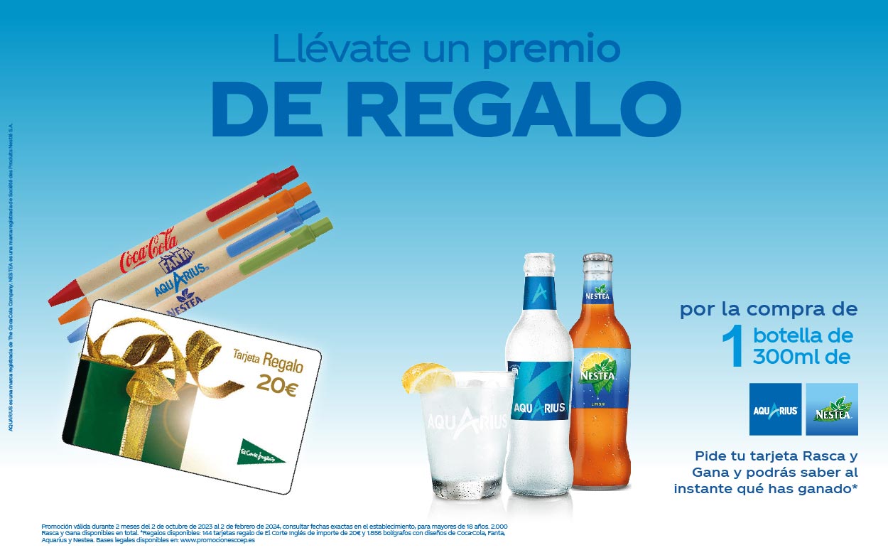 Por la compra de tu botella de vidrio de Aquarius o Nestea podrás una tarjeta de El Corte Inglés de 20€